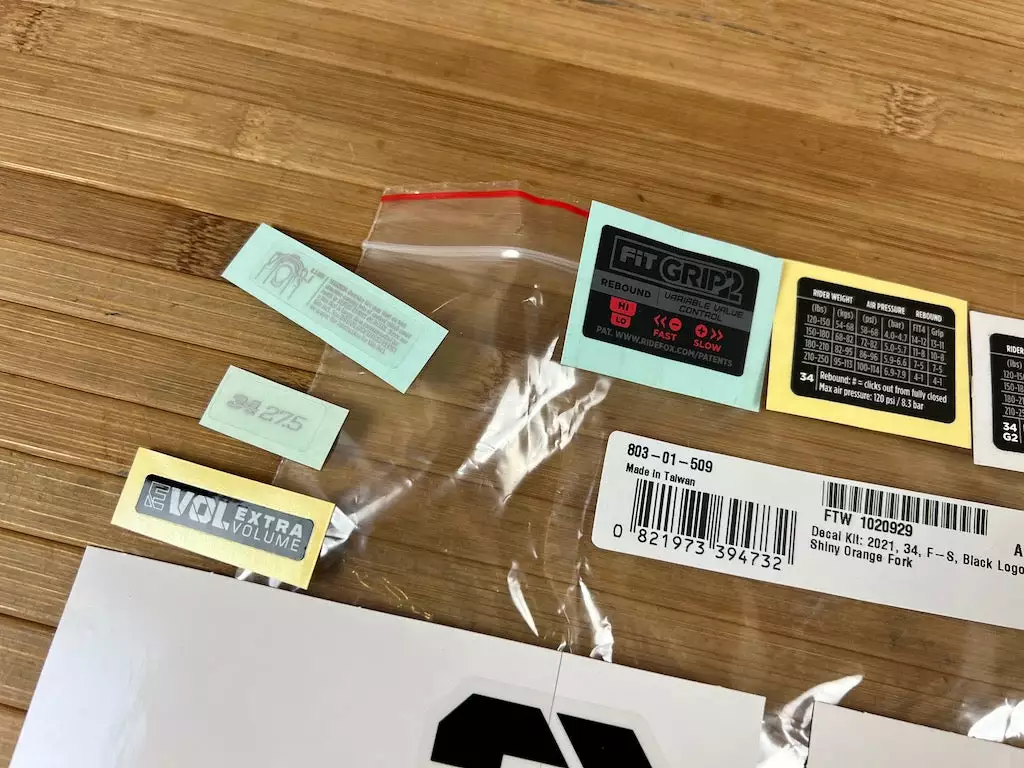 Decal Kit: 2021 34 F-S Black Logo Shiny Orange Fork