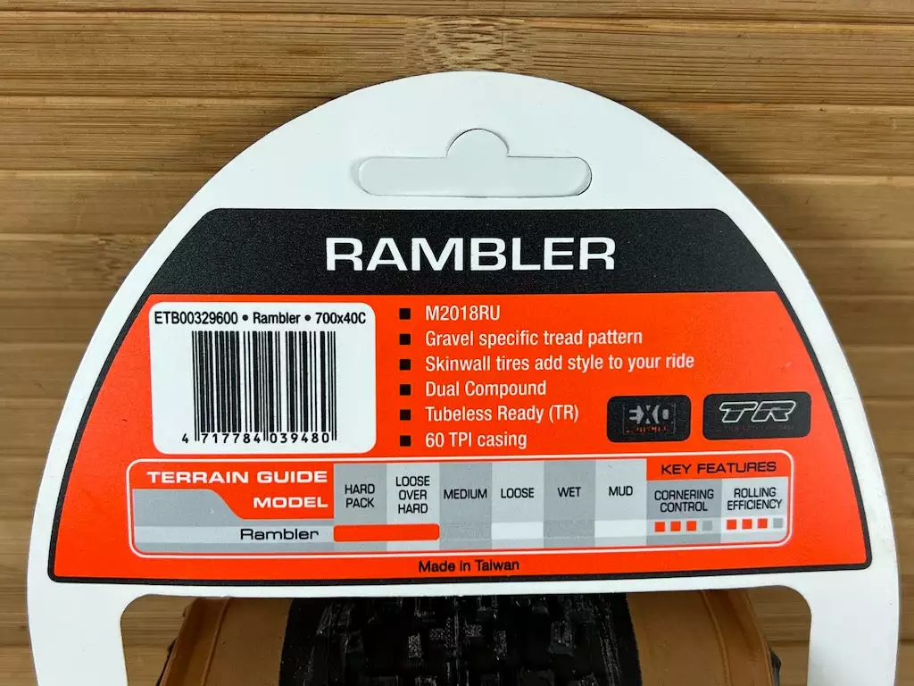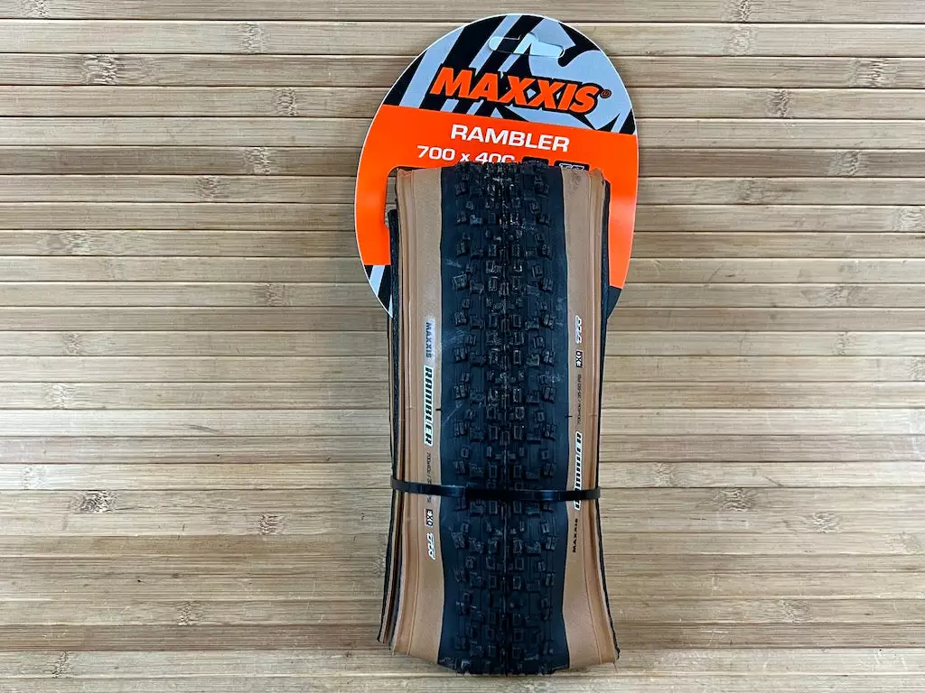 Maxxis erster echter Gravel Bike Reifen. Der Rambler hat das Volumen, das man für guten Komfort braucht, und das Profil, das man für Speed und Kontrolle braucht. Die eng stehenden Mittelstollen sind angeschrägt und rollen deshalb sehr gut auf hartem Untergrund, offen stehende Seitenstollen sorgen für gut berechenbares Kurvenverhalten bei unterschiedlichen Bodenverhältnissen.