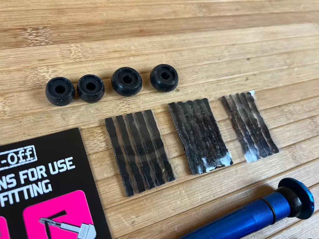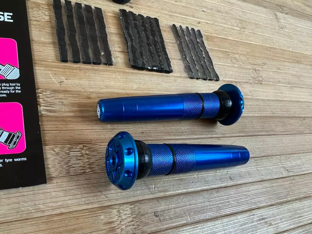 Jedes dieser leichten und langlebigen Sets enthält alles, was du brauchst, um weiterfahren zu können, wenn du mit einem Loch kämpfst, das sich einfach nicht abdichten lässt. Ein 2-in-1-Pannenwerkzeug aus rostfreiem Stahl, eine Vielzahl von Repair Plugs in verschiedenen Größen und ein Trimm-Messer.