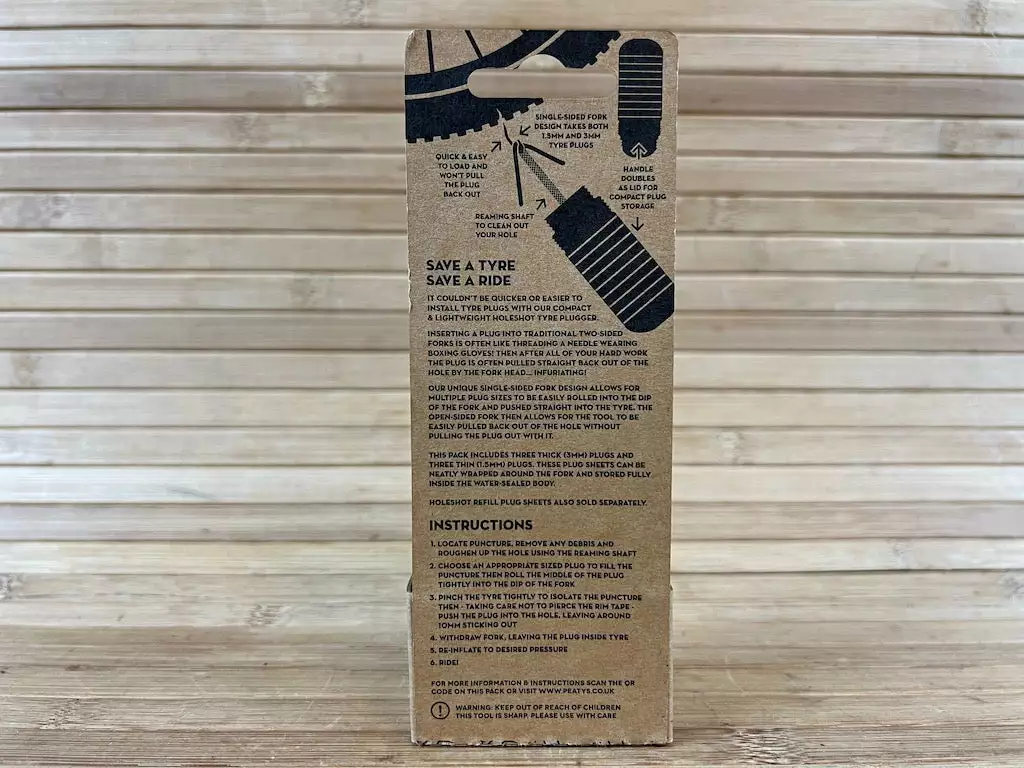 Peaty’s spezielles Nadeldesign erleichtert das Einsetzen verschiedener Pluggrößen in die Vertiefung der Nadel und ermöglicht es, diese direkt in den Reifen zu drücken. Die offene Seite der Spitze ermöglicht es dann, das Tool einfach wieder aus dem Loch zu ziehen, ohne den Plug mit herauszuziehen.