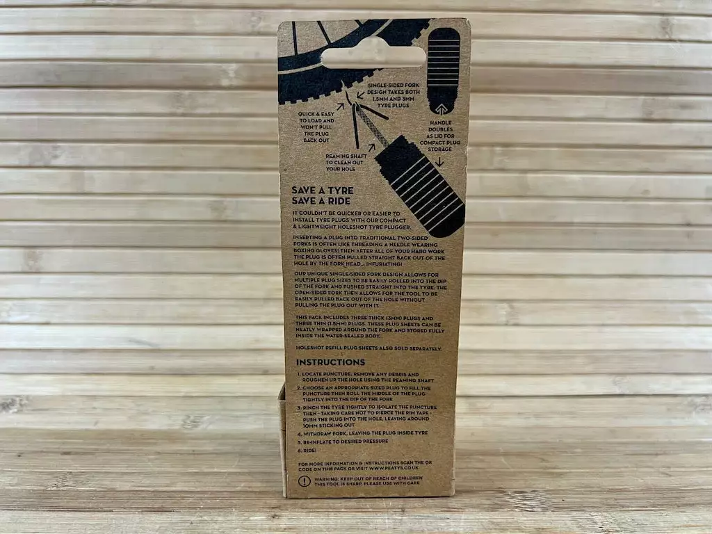 Peaty’s spezielles Nadeldesign erleichtert das Einsetzen verschiedener Pluggrößen in die Vertiefung der Nadel und ermöglicht es, diese direkt in den Reifen zu drücken. Die offene Seite der Spitze ermöglicht es dann, das Tool einfach wieder aus dem Loch zu ziehen, ohne den Plug mit herauszuziehen.